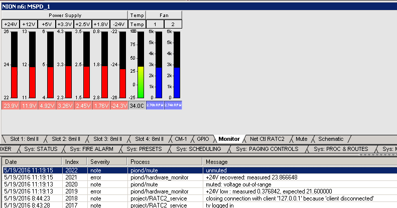 This isn't a critical problem with the hardware. The last run of NIONs had a part change on the main board which is the IC that does the voltage monitoring. It works a little more efficient than the old part did so it is reporting quicker than the voltage rails have time to register at times. You will notice it recovers within 2 seconds. The software people are implementing a code fix in the next release of Nware v1.7.3 and it is currently in beta testing. As long as you are not noticing a problem with any audio dropout then it is ok to continue running as is.